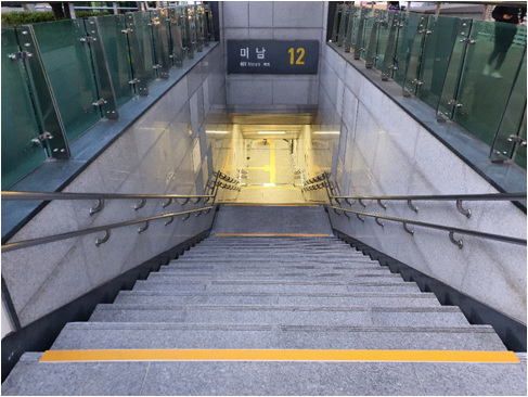 특히 역사 내 계단 시작‧끝 지점에 눈에 잘 띄는 특수색 논슬립을 설치해 약시자들의 안전한 이동을 보장한다. 2019년부터 지난해까지 14개 역에 부착했고 향후 신규 건설구간 등에도 적용 예정이다.