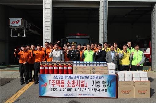 한국남부발전 부산빛드림본부가 지난 20일 부산 사하소방서에서 화재 안전 환경조성 사회공헌활동을 위한 ‘주택용 소방시설(소화기, 화재감지기) 설치 및 구급의료함 기증 행사’를 가졌다고 밝혔다.