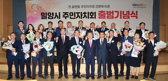 경남 밀양시는 16개 전 읍면동 주민자치회 전환에 따라 21일 '밀양시 주민자치회 출범 기념식'을 시청 대강당에서 가졌다.