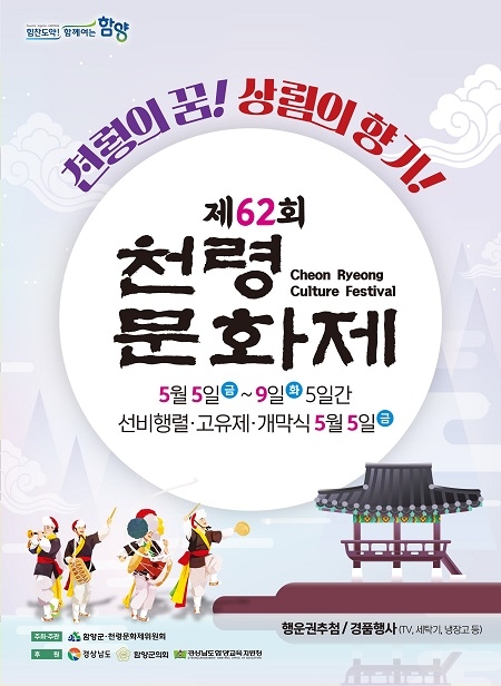 경남 함양군을 대표하는 종합문화예술축제인 '제62회 천령문화제'가 오는 5월 5일부터 9일까지 천년의 숲 상림공원 일원에서 열린다.