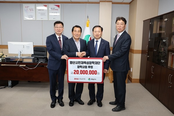 BNK경남은행은 21일 양산시를 방문해 지역 인재 육성을 위한 장학금 2천만원을 시 인재육성재단에 기탁했다.