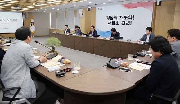 경남도는 24일 도청 도정회의실에서 도지사와 도민 10명이 도정에 대해 직접 소통하는 '4월 도민회의'를 가졌다.