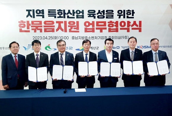 기술보증기금(기보)이 충남지방중소벤처기업청, 보령시, 서천군, 예산군 등과 25일 충남중기청에서 ‘지역특화산업 육성을 위한 한묶음지원 업무협약’을 체결했다고 밝혔다.
