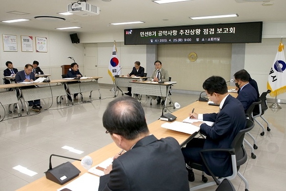 이날 보고회는 홍태용 시장 주재로 간부공무원들이 참석한 가운데 민선 8기 공약사업의 원활한 이행 및 체계적 관리를 위해 공약사업별 추진상황을 점검하고, 당면한 문제점 분석 및 논의를 통해 효과적인 해결책을 모색하기 위해 마련됐다.