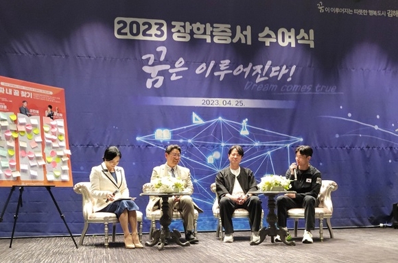 특히 코로나 이후 3년 만에 재개된 수여식인 만큼 새로운 시도로 재단은 장학생들에게 꿈과 희망을 심어주기 위해 지역 출신 명사 3명이 출연한 토크콘서트 '진짜 내꿈 찾기'를 마련해 좋은 반응을 얻었다.