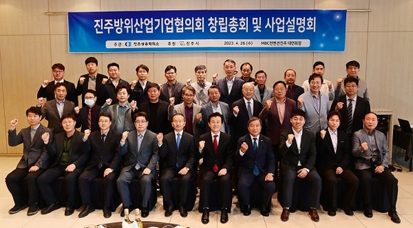 경남 진주시와 진주상공회의소는 26일 엠비씨컨벤션진주에서 조규일 시장, 이영춘 진주상공회의소 회장과 방산 관련 중소기업 관계자들이 참석한 가운데 진주 방위산업 기업협의회 창립총회 및 사업설명회를 가졌다.