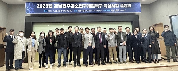 경남진주강소특구지원센터는 지난 25일 경상국립대학교 항공우주산학협력관 대강당에서 진주시 관계자, 기업체 임직원 등 70여 명이 참석한 가운데 '2023년 경남진주강소연구개발특구육성 사업설명회'를 온·오프라인으로 동시 개최했다.