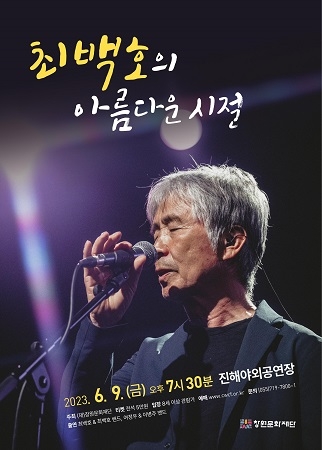 창원문화재단은 낭만가객 최백호의 '아름다운 시절' 콘서트를 오는 6월 9일 저녁 7시 30분 진해야외공연장에서 개최한다.