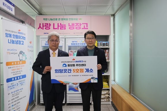 부산항만공사(BPA)가 28일 중앙동 주민센터에 나눔냉장고 ‘BPA희망곳간’ 5호점을 개소했다고 밝혔다.