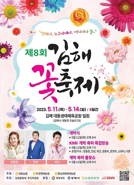 김해 꽃 축제 추진위원회가 주관하고 김해시에서 후원하는 '제8회 김해 꽃 축제'가 오는 11일부터 14일까지 대동생태체육공원에서 열린다.