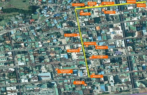 이 구간은 타 지역 상권 대비 뒷고기 식당 분포도가 양호하고 경전철, 버스 등 간선 교통망이 집중돼 접근성에서 유리한 입지로 구도심 상권 활성화 기여도가 높다.