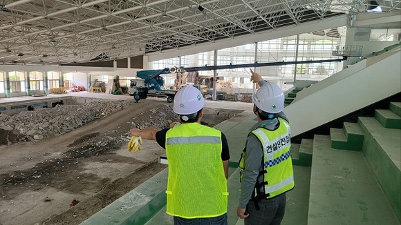 10월 전국체육대회와 11월 전국장애인체육대회를 위해 신축 또는 개·보수 중인 목포종합경기장을 비롯한 8개 경기장에 대해서는 건설 안전점검이 실시된다. 관리원 호남지사와 목포시가 함께 진행하는 점검은 지난 2일부터 이틀간 이뤄진 종합경기장 공사현장 안전점검을 시작으로 오는 9월까지 모두 11차례 실시될 예정이다.