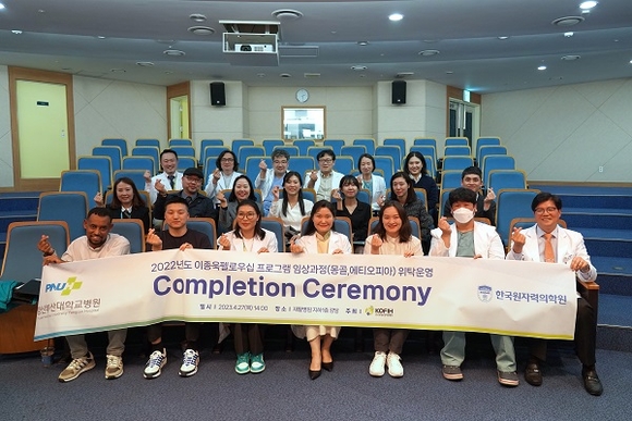 지난 27일 양산부산대병원은 '2022년도 이종욱펠로우십 프로그램 임상과정(몽골, 에티오피아)'을 위탁 운영해 6개월간 연수한 몽골, 에티오피아 의사직 연수생의 교육 수료를 기념하는 초청 연수 수료식을 개최했다고 밝혔다.