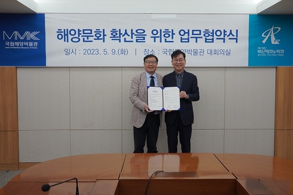부산테크노파크(TP)가 9일 영도구 동삼혁신지구 내 국립해양박물관 대회의실에서 국립해양박물관과 해양산업 발전과 해양문화 저변확대를 위한 업무협약을 체결했다.
