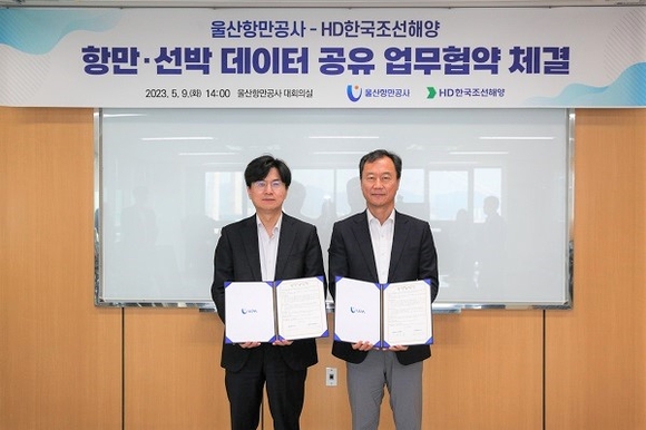 울산항만공사는 9일 오후 12층 대회의실에서 울산항과 선박의 데이터 공유를 통한 디지털 중심의 해운항만 환경을 조성하기 위해 HD현대의 조선 부문 중간지주사인 HD한국조선해양과 업무협약을 체결했다