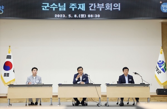 '군수와의 동행'은 군수와 직원(7급 이하)이 하루 동안 군수의 일정을 함께 소화하는 것으로, 실무자로서는 평소 참여가 쉽지 않은 간부회의, 행사장 방문, 민원인 면담, 업무 결재 등 군정 전반에 대한 안목을 넓히고 격의 없는 소통·공감의 장을 마련하기 위해 실시했다.