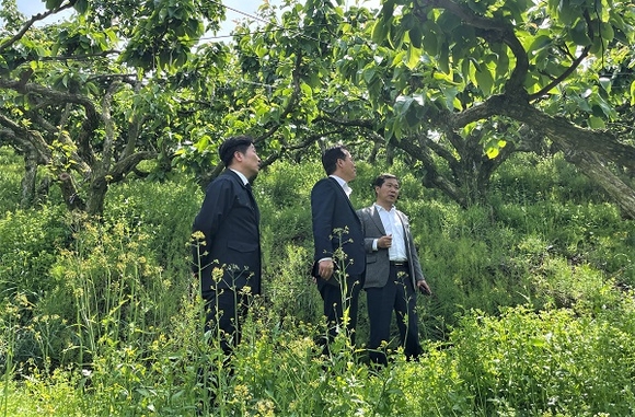 이날 김주양 본부장, 김정구 진주시지부장은 진주시 문산면 배 농장을 방문해 피해 현장을 확인하면서, 농업인의 고충 의견을 청취했다.