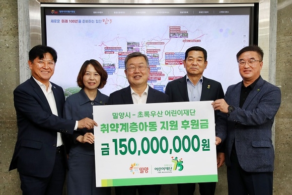 경남 밀양시는 초록우산 어린이재단 경남지역본부와 10일 취약계층 아동을 지원하기 위한 후원금 약정식을 가졌다.
