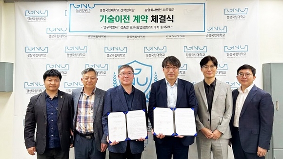 경상국립대학교기술지주주식회사는 지난 9일 농업회사법인 씨드웰과 '백세콩 신품종 기술이전 계약'을 체결했다. 백세콩 신품종 발명자는 정종일 농학과 교수이다.