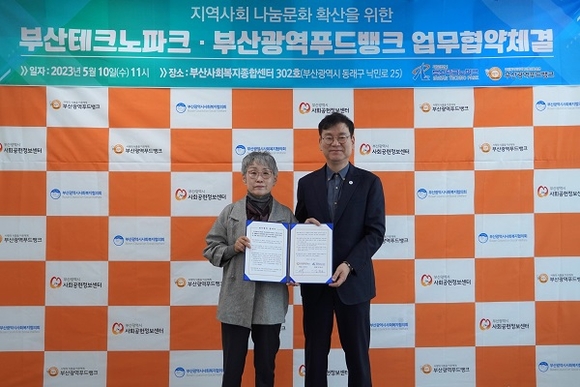 부산테크노파크(TP)가 지난 10일 부산사회복지종합센터에서 부산광역푸드뱅크와 ‘식품 및 생활용품 자원연계로 지역사회 나눔문화 확산을 위한 업무협약’을 체결했다고 밝혔다.