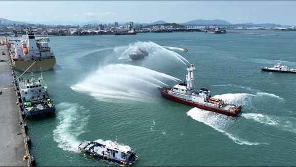 울산항만공사는 11일 울산항 6부두에서 해양수산부와 공동 주관으로 복합재난 대비 합동 현장 훈련을 하고 있다. (사진=UPA 제공)