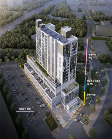 총사업비는 284억4000만 원이며, 연면적 1만6234.62㎡, 지상 17층 규모로 1~3층은 공영주차장(130대)이, 4~17층은 행복주택(144호) 및 주차장(75대)이 들어선다.