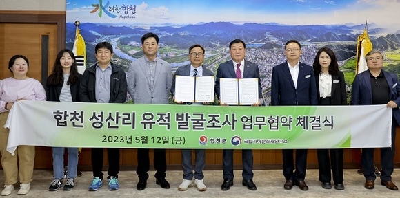 경남 합천군과 국립가야문화재연구소는 12일 오후 군청에서 '합천 성산리 유적' 발굴조사 및 복원을 위한 업무협약을 체결했다.