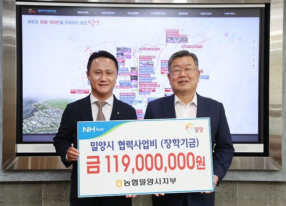 농협은행 밀양시지부는 시와 금고 약정에 따라 2022년부터 내년까지 협력사업비로 매년 1억 1900만원씩 3년간 총 3억 5700만원을 밀양시민장학재단에 장학기금으로 출연한다.