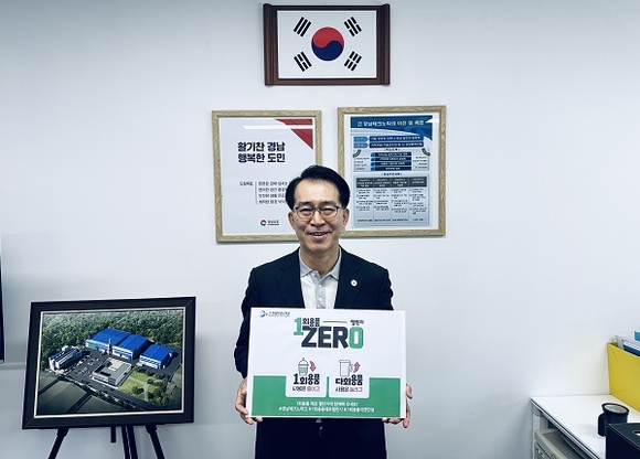 경남테크노파크(경남TP) 옥주선 항공우주본부장이 일상생활 속 일회용품 사용을 줄이기 실천을 약속하는 '1회용품 제로 챌린지'에 동참했다.
