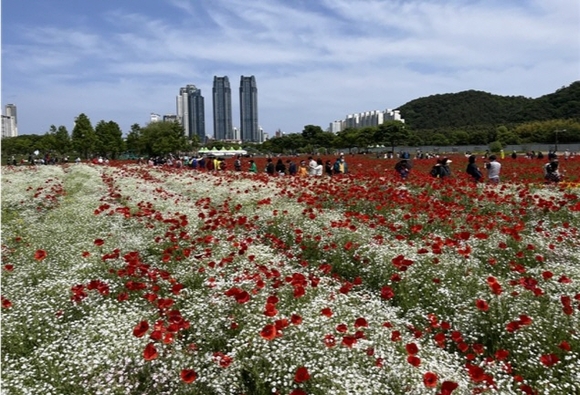활짝 핀 꽃양귀비, 작약, 수레국화, 안개초, 금영화 등 6000여만 송이 봄꽃이 관람객을 맞이한다.