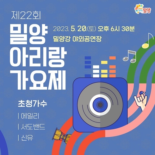 한편 2002년부터 열린 밀양아리랑 가요제는 올해로 22회를 맞게 되며, 가수 지망생들의 신인 가수 등용문 역할을 해온 전통 있는 가요제다.