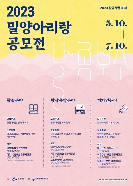 밀양문화관광재단은 오는 7월 10일까지 '2023 밀양아리랑 공모전'을 진행한다고 18일 밝혔다.