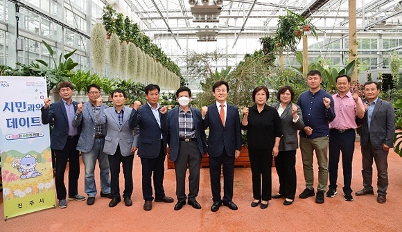 조규일 진주시장은 18일 진주시 농업기술센터 원예체험온실에서 농업인 단체장 등 10여 명과 5월 시민과의 데이트 시간을 가졌다.
