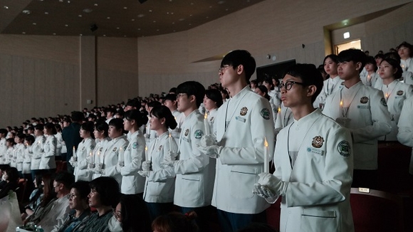 간호학과 선서생 대표 노희재, 황이진 학생은 ▲일생을 의롭게 살며 전문 간호직에 최선을 다할 것 ▲인간의 생명에 해로운 일은 어떤 상황에도 하지 않을 것 ▲간호의 수준을 높이기 위해 전력을 다할 것 ▲성심으로 보건의료인과 협조하고 간호를 받는 사람들의 안녕을 위해 헌신할 것을 선서했다.
