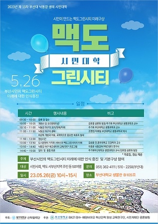 이번 시민대학은 '시민이 만드는 맥도 그린시티 미래구상'을 주제로 동아대 산학협력단과 함께 마련해, 낙동강 하구 국가도시공원 조성사업의 이해와 하구의 입체적인 관리·보존에 관한 이해 증진을 목표로 부산 시민들을 대상으로 실시한다. '맥도 그린시티'는 부산 강서구 대저동 맥도마을 일대를 대규모 공원 중심의 그린시티로 만들기 위한 구상이다.