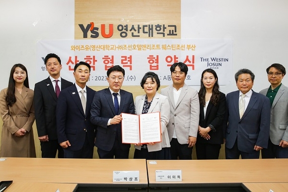 이날 협약식에 영산대에서는 이미옥 호텔관광대학장, 유동윤 호텔경영학과장, 김은정 호텔경영학과 교수, 웨스틴조선부산에서는 박상조 총지배인, 노창만 영업지원팀장, 이재욱 파트장, 장민선 파트너 등이 참석했다.