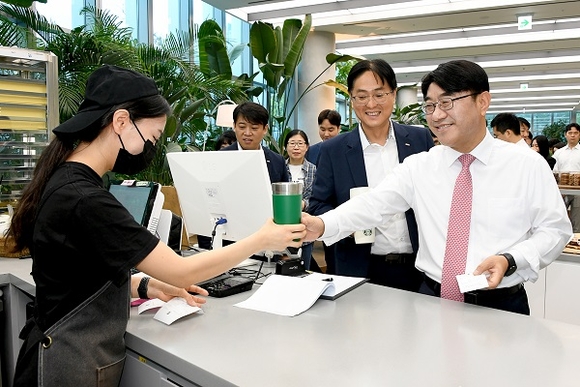 한편 방 은행장은 지난 19일 부산은행 본점 1층 로비의 열린 휴식 공간인 ‘B: FOREST’에서 ‘환경을 위해 애쓰지(ESG) 날’을 맞이해 직원들과 함께 텀블러를 이용해 음료를 구입하는 행사에 동참했다.