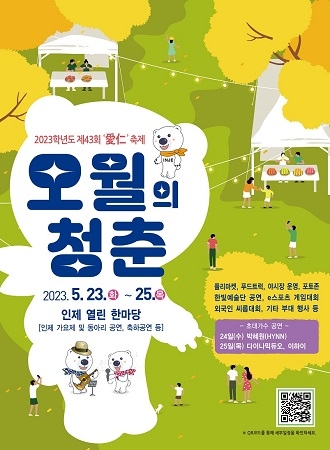 인제대학교 김해캠퍼스 곳곳에서 23일부터 25일까지 사흘간 '2023학년도 제43회 애인(愛仁) 축제 '오월의 청춘''이 열린다.