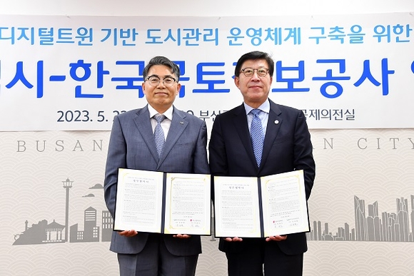 부산시가 22일 오후 한국국토정보공사(LX)와 ‘디지털 트윈 기반 부산 도시관리 운영체계 구축’을 위한 업무협약을 체결했다.