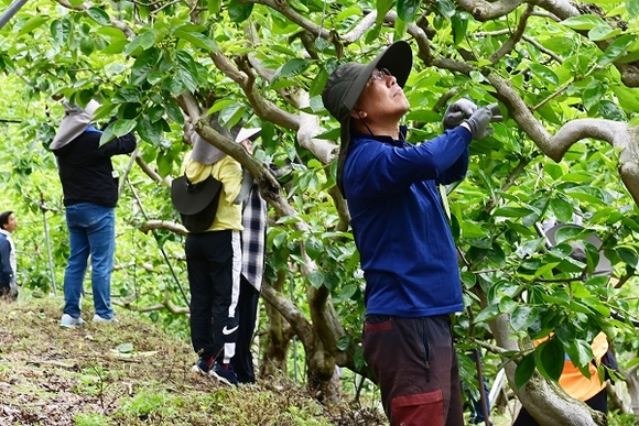 현재 농촌일손돕기 참여 분위기 조성을 위해 진주시청 공무원들이 일손 부족 농가를 찾아 일손 돕기에 참여하고 있다. 19일에는 조규일 시장과 농업기술센터 직원 40여 명이 금곡면 검암리 단감 재배 농장에서 감 솎기 작업을 도우며 구슬땀을 흘렸다.