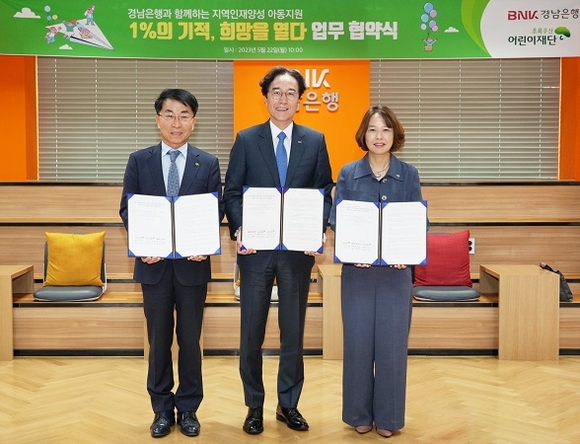 BNK경남은행은 초록우산 어린이재단과 '1%의 기적, 희망을 열다 업무 협약'을 체결했다고 23일 밝혔다.