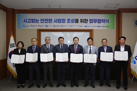 경남개발공사는 23일 청사 3층 상황실에서 국토안전관리원 등 안전 유관기관 7곳과 '사고 없는 안전한 사업장 조성'을 위한 업무협약을 체결했다.