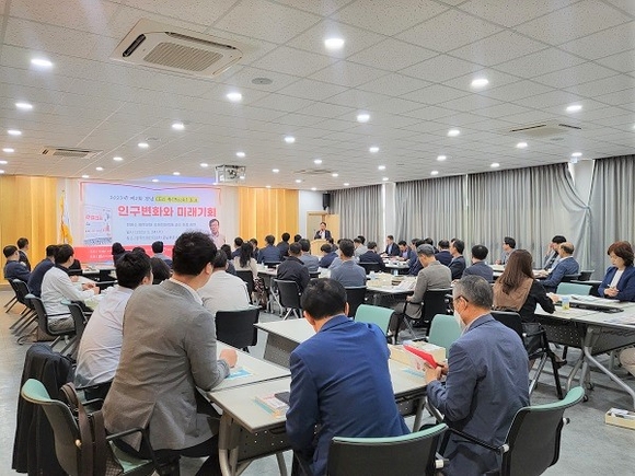 24일 오전 7시 한국산업단지공단 경남지역본부 6층 융합의 장에서 '인구변화와 미래기회'를 주제로 열린 북토크에 기업인 등 80여 명이 참석했다.