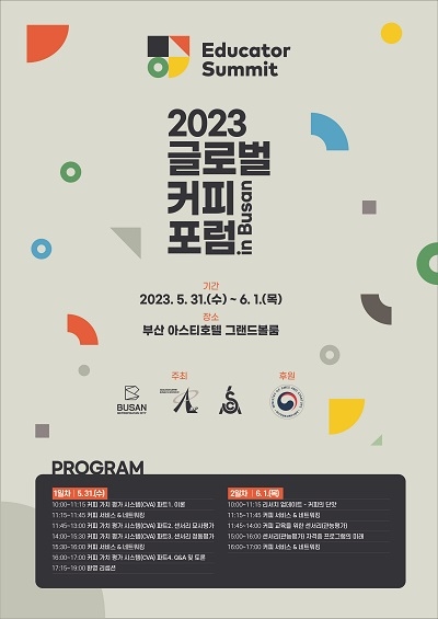 본 행사는 세계 최초로 스페셜티 커피 교육에 특화된 콘퍼런스로 세계 각국에서 활약하는 커피 전문가 등 170여 명이 부산에 모여 최신 커피업계 동향을 공유할 예정이다.