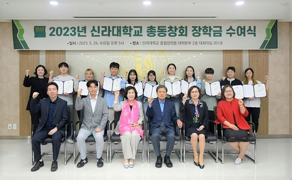 신라대학교 총동창회장학재단은 지난 24일 2023학년도 1학기 총동창회 장학금 수여식을 가졌다고 밝혔다.