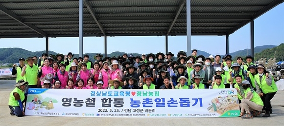 경남농협은 25일 마늘 수확철 일손 부족을 겪고 있는 고성군 회화면 배둔리에서 농촌일손돕기를 실시했다.