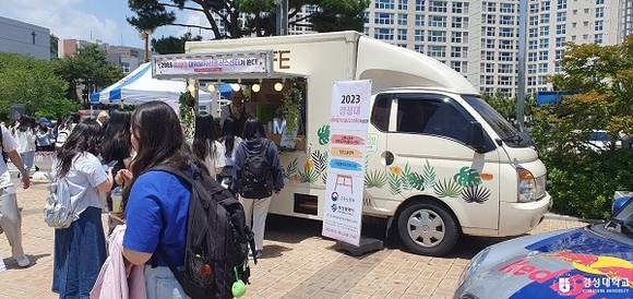 경성대 대학일자리플러스센터는 지난 23일 재학생, 지역청년을 대상으로 '2023년 거점형 특화프로그램' 및 '청년고용정책' 등의 홍보를 위해 본교 중앙도서관 광장에서 커피차를 운영하는 행사를 개최했다.