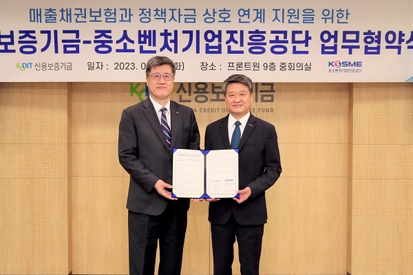 중진공은 신보와 30일 오전 서울 마포 프론트원에서 '정책자금과 매출채권보험 상호 연계 지원을 위한 업무협약'을 체결했다고 밝혔다.