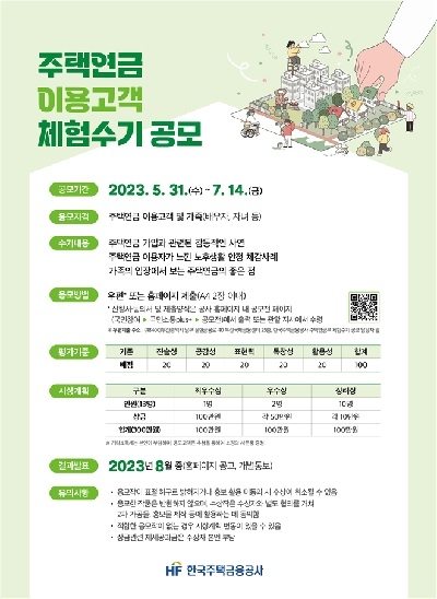 한국주택금융공사(HF)가 주택연금 출시 16주년을 맞아 주택연금 이용고객 및 가족을 대상으로 체험수기 공모를 실시한다고 30일 밝혔다.