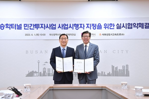 부산시가 1일 오전 10시 시청 7층 국제의전실에서 ‘승학터널 민간투자사업’ 실시협약 체결식을 개최했다고 밝혔다.